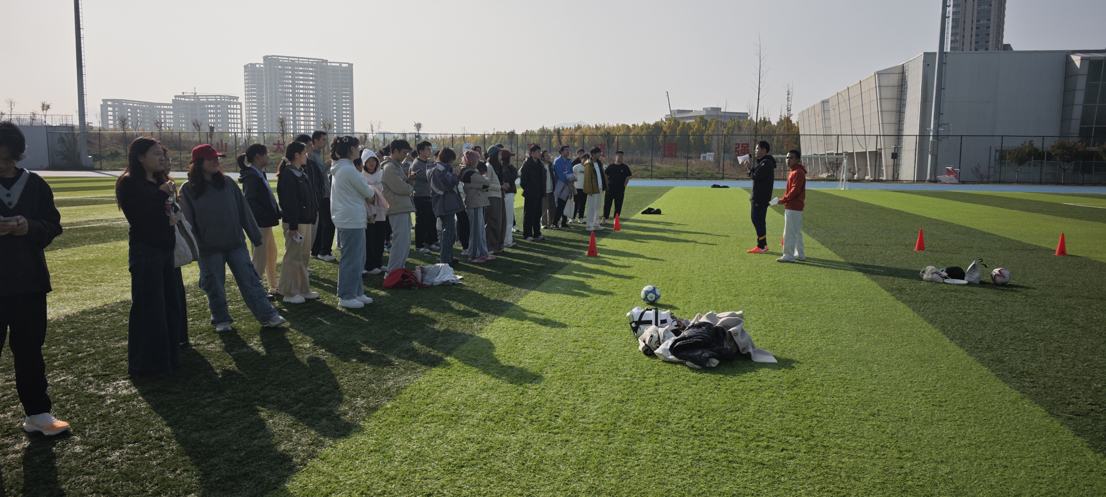 为丰富学生课余文化生活,营造积极向上、健康活泼的校园氛围,提升学生团队协作与身体素质,近日,前沿交叉科学青岛研究院成功举办第一届学生友谊趣味足球活动。本次活动以“友谊第一,比赛第二”为宗旨,打破传统竞技模式,融合趣味性与协作性,吸引了来自不同年级的多支队伍踊跃参与。