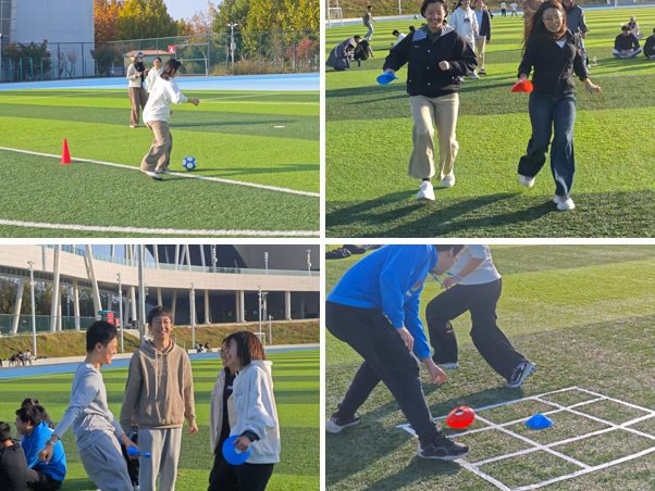 本次活动突破常规足球赛模式,设置“绕桩接力”“井字棋对决”“足球打靶”三大趣味项目,并增设“抢分时间”挑战环节,兼顾足球基础与策略协作,确保零基础同学也能尽情投入。各支队伍在项目中各展所长,既有带球绕桩的灵活敏捷,也有井字棋中的战术布局,更不乏足球打靶时的精准发力。绿茵场上掌声与欢笑交织,竞争与合作共存,充分彰显了研究院学子蓬勃的朝气与智慧。活动现场,同学们不仅在运动中释放压力,更在互动中深化情谊,让“团结协作、勇于挑战”的体育精神深入人心。