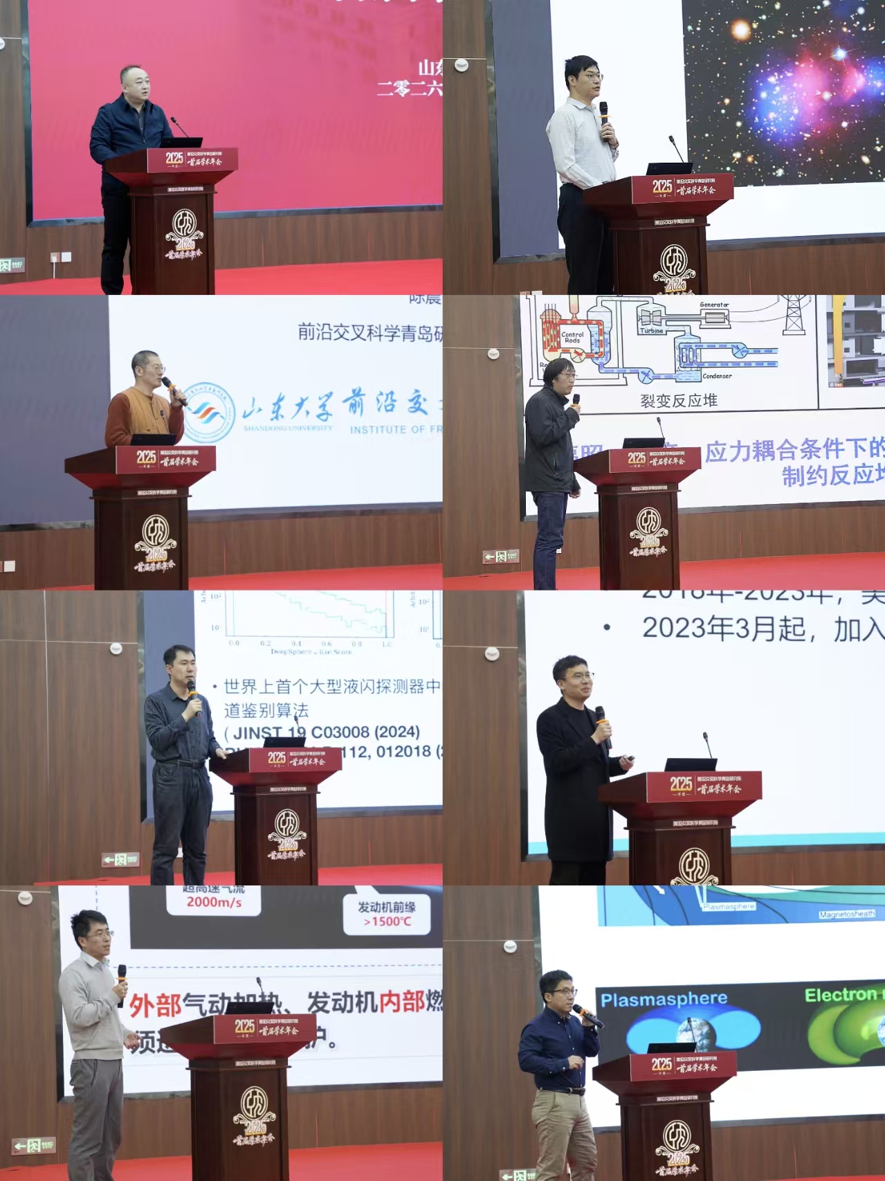 在学术报告环节,研究院七个研究团队依次汇报年度研究进展。粒子物理理论团队刘天博教授作了题为“研究进展”的报告、加速器粒子物理实验与软件团队刘彦麟教授分享了题为“ATLAS实验上希格斯物理研究”的报告、非加速器实验与探测器技术团队杜杨洪岳教授作了题为“江门中微子实验的GeV能区物理进展与展望”的报告、中高能核物理团队陈震宇教授分享了题为“重离子碰撞中的超子极化”的报告、粒子与物质相互作用团队高宁教授作了题为“材料辐照损伤机制与抗辐照材料研究”的报告、极端条件热物理团队杨家跃教授作了题为“高速飞行器气动热辐射与热防护研究进展”的报告、太空科学与航天工程团队朱辉教授作了题为“利用电磁波极性反转反演近地空间离子特征”的报告。内容涵盖从基础粒子物理到航天工程应用的多个前沿领域,充分展现了研究院学科交叉的活力与科研创新能力。