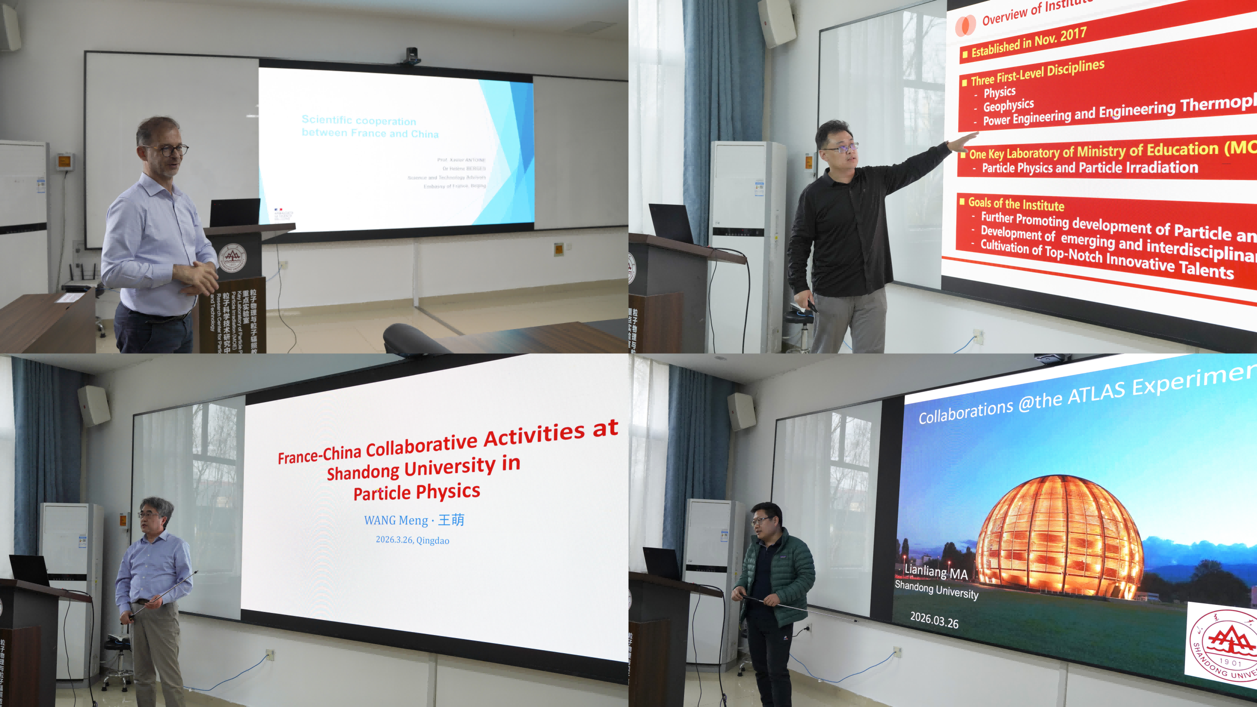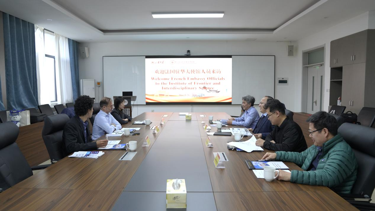 2026年3月26日下午,法国驻华大使馆科技专员Xavier ANTOINE教授一行到访前沿交叉科学青岛研究院,法国驻华大使馆科技项目官员Aïman LAVALLARD-FADLANE先生陪同访问,前沿交叉科学青岛研究院院长黄性涛教授主持交流活动。